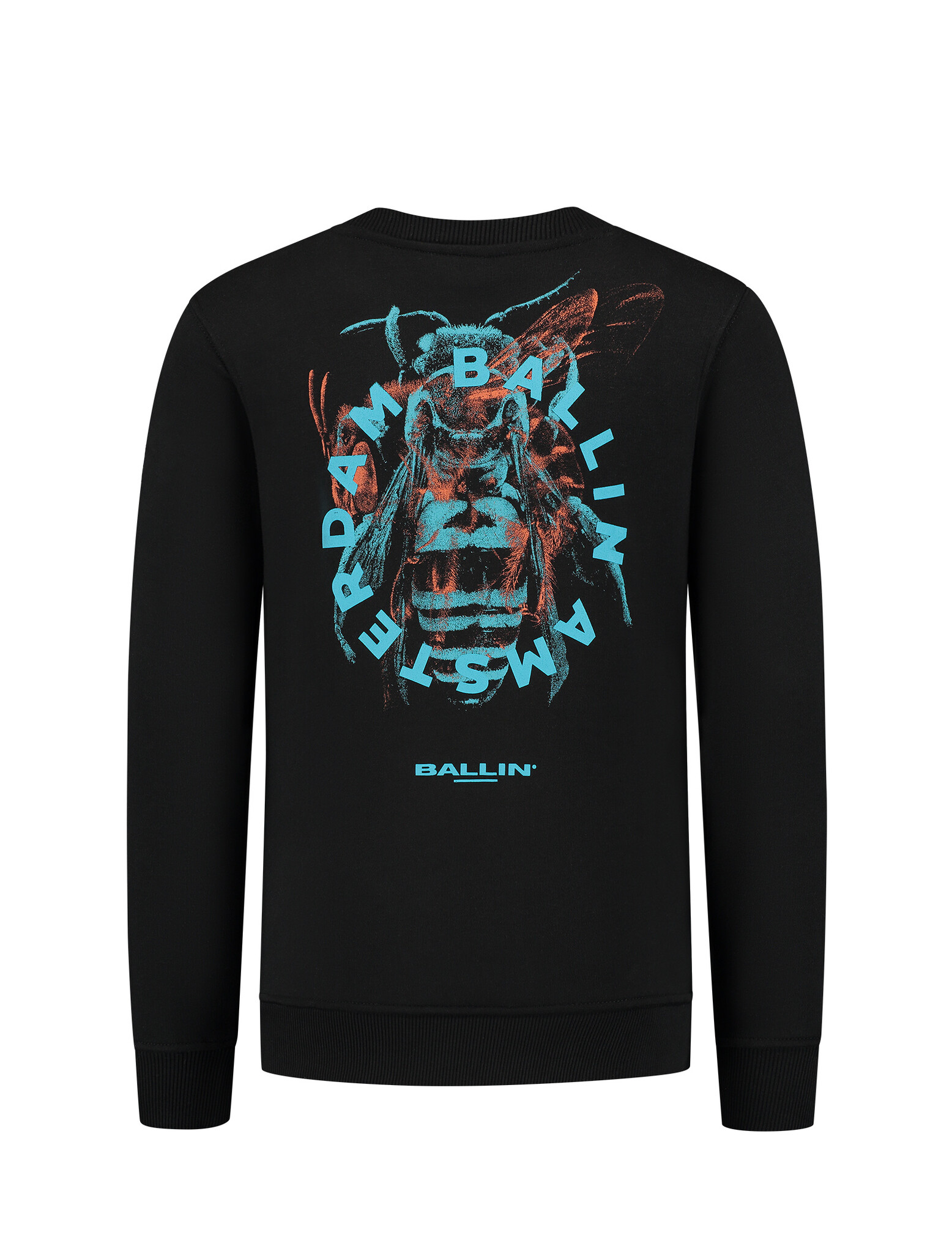Deze Heerlijke zwarte sweater is een crewneck model wat wil zeggen een trui met een ronde hals/boord. De trui is zwart van kleur met in een hele mooie kleur blauw de merknaam op de borst staan, maar de echte eye catcher van deze trui vind je op de achterzijde, hier vind je namelijk een hele coole backprint in dezelfde kleur blauw als de voorzijde in combinatie met oranje. Op de achterzijde in de opdruk staat ook weer de merknaam BALLIN AMSTERDAM. In de zij van de trui vind je een klein label met de iconische B van het merk terug. Combineer de trui op een zwarte joggingbroek, cargo of natuurlijk een stoere grijze of blauwe denim jeans.