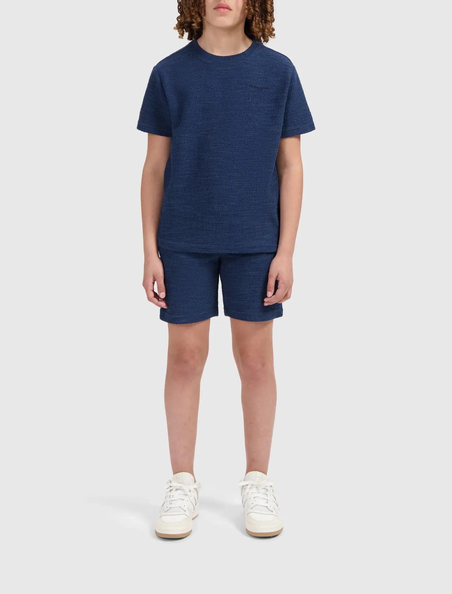 Deze super fijne short uit de junior collectie is gemaakt van een hoogwaardige katoen mix, met een zachte boucléstructuur die zorgt voor een onderscheidende uitstraling. Op de pijp staat een subtiele HD-rubberprint van het bekende logo van het merk BALLIN AMSTERDAM. combineer de short met het bijpassende shirt voor de ultieme zomer outfit. De set is ook in het beige verkrijgbaar. De broek heeft een elastische tailleband met trekkoord.