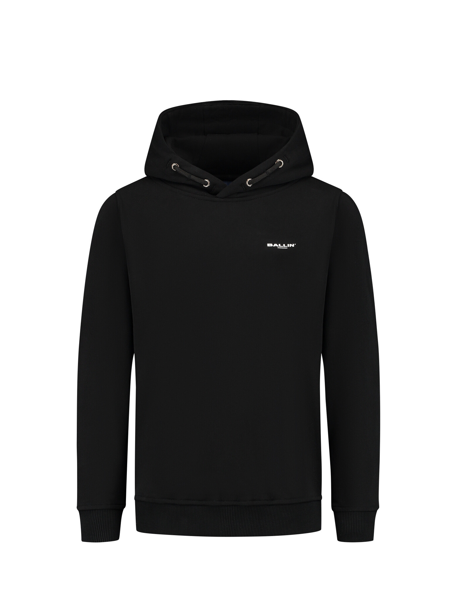 Deze heerlijke capuchon trui is zwart van kleur en heeft als mooi klein accent de merknaam in het wit op de borst staan, de opdruk ligt op de stof en is van rubber achtig materiaal gemaakt. De hoodie heeft ook een klein label in de zij met de iconische B van het merk erop staan. De hoodie heeft boorden aan de uiteinde van de mouwen en aan de onderzijde van de trui. Combineer de hoodie met de bijpassende zwarte jogging broek welke ook bij ons verkrijgbaar is voor het perfecte basic joggingpak, maar de hoodie is natuurlijk ook te gek op een grijze spijkerbroek of zwarte cargo broek. De hoodie is van het te gekke urban streetwear merk BALLIN AMSTERDAM.