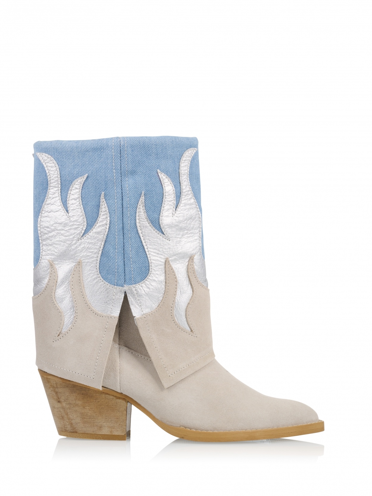 De denim trend is helemaal in en speciaal daarom hebben wij deze te gekke laarsjes van DWRS. De laarzen hebben en hakje en een punt aan de voorkant. De stof is suède en de bovenkan is denim. De zilveren vlammen maken de laars helemaal af en zorgen voor die extra touch!