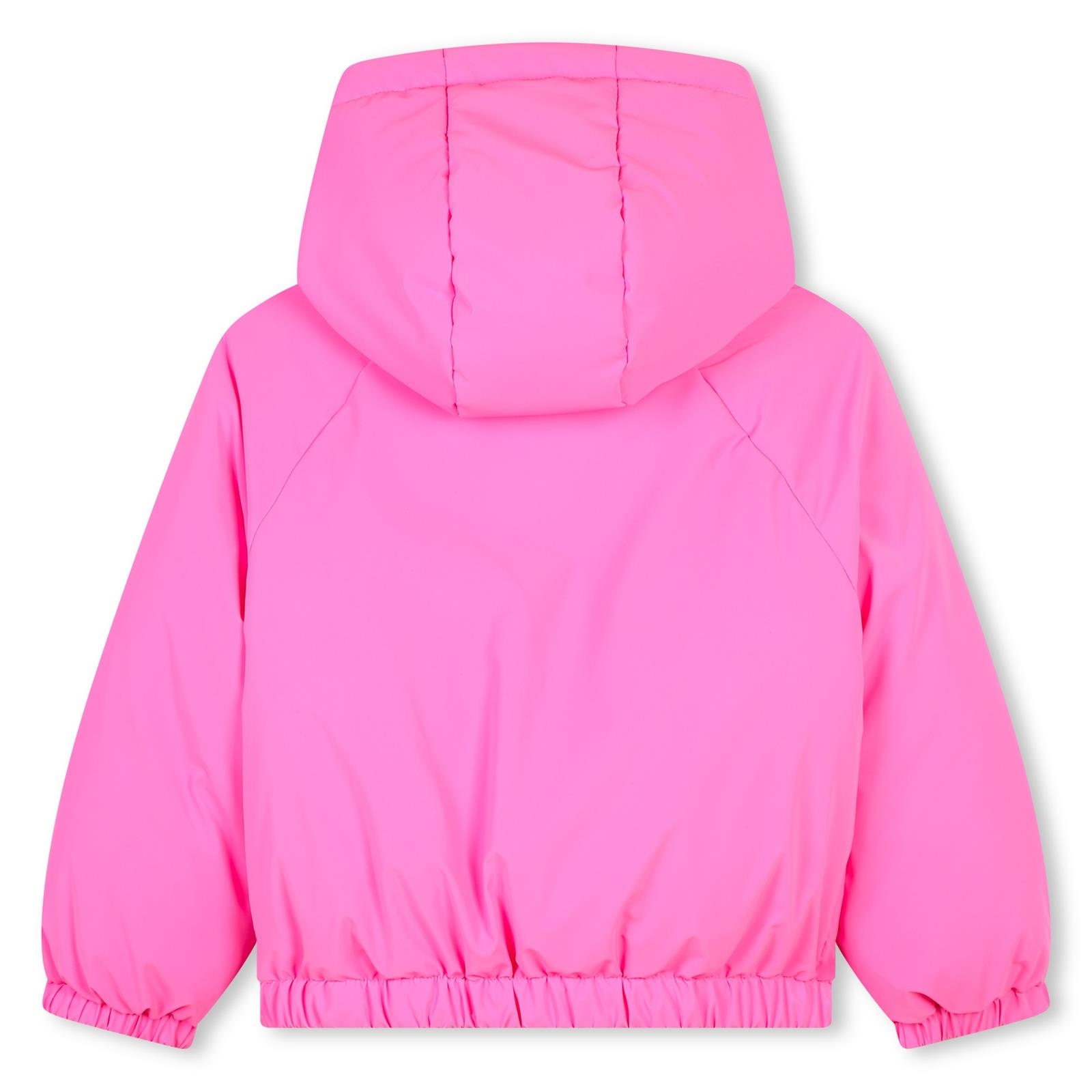 Deze jas van Billieblush heeft kleurrijke strepen aan de voorkant. De zakken van de puffer jas hebben de vorm van een hartje, wat zorgt voor een schattig effect. De jas heeft een heerlijke, warme capuchon. De onderkant van de jas is van elastiek, waardoor de jas goed aansluit.
