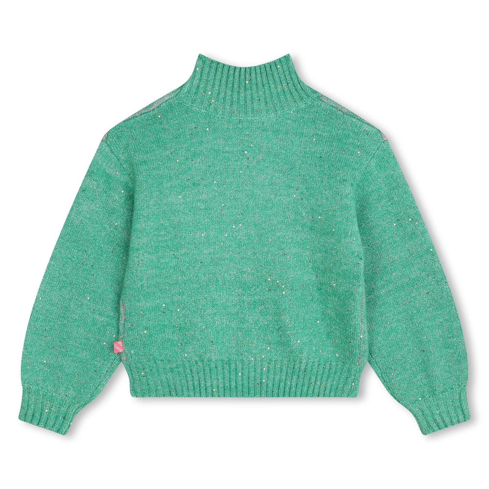 Deze prachtige trui van Billieblush is voor de echte glamour meisjes. In de trui is lurex draad verwerkt en pailletten, wat zorgt voor het glitter effect. De trui heeft een wat hoger kraagje dan normale truien, waardoor de sweater heerlijk warm is voor de koudere dagen.