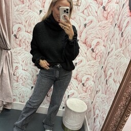 Deze mega gave jeans is een wide leg model in de kleur antraciet grijs en is afgewerkt met all over studs. De denim broek heeft een mid waist taille en is een five pocket model.
