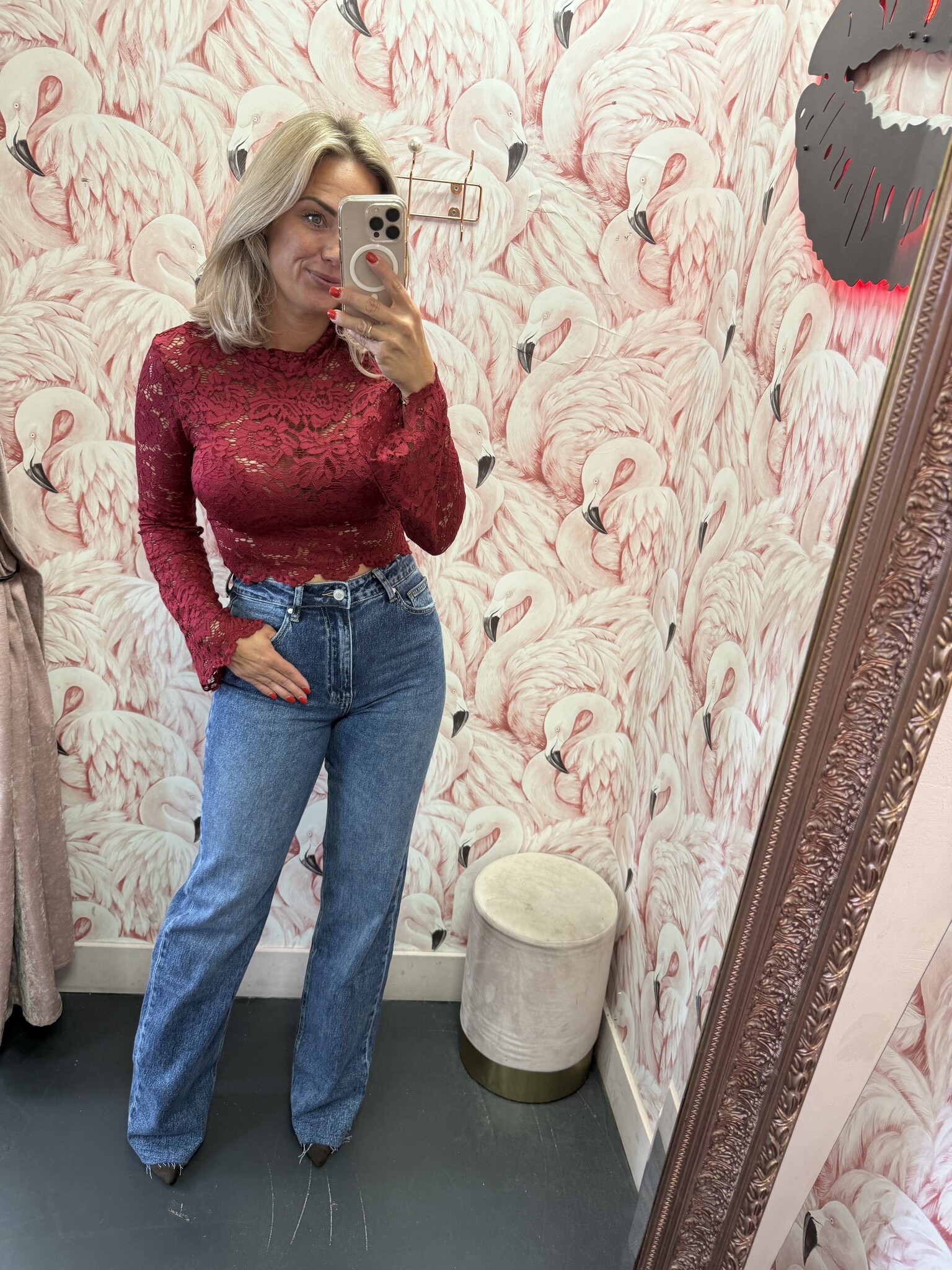 Deze super leuke kanten top valt cropped en is dus een korter model, de top heeft een uitlopende mouw en is volledig van kant, ook is de top voorzien van voorgevormde cups dus een BH is ook niet meer nodig! De top is mega leuk te combineren voor een festival met een baggy wide leg broek en sneakers en ga je uiteten of op stap combineer je hem met hakken en een mooie pantalon.