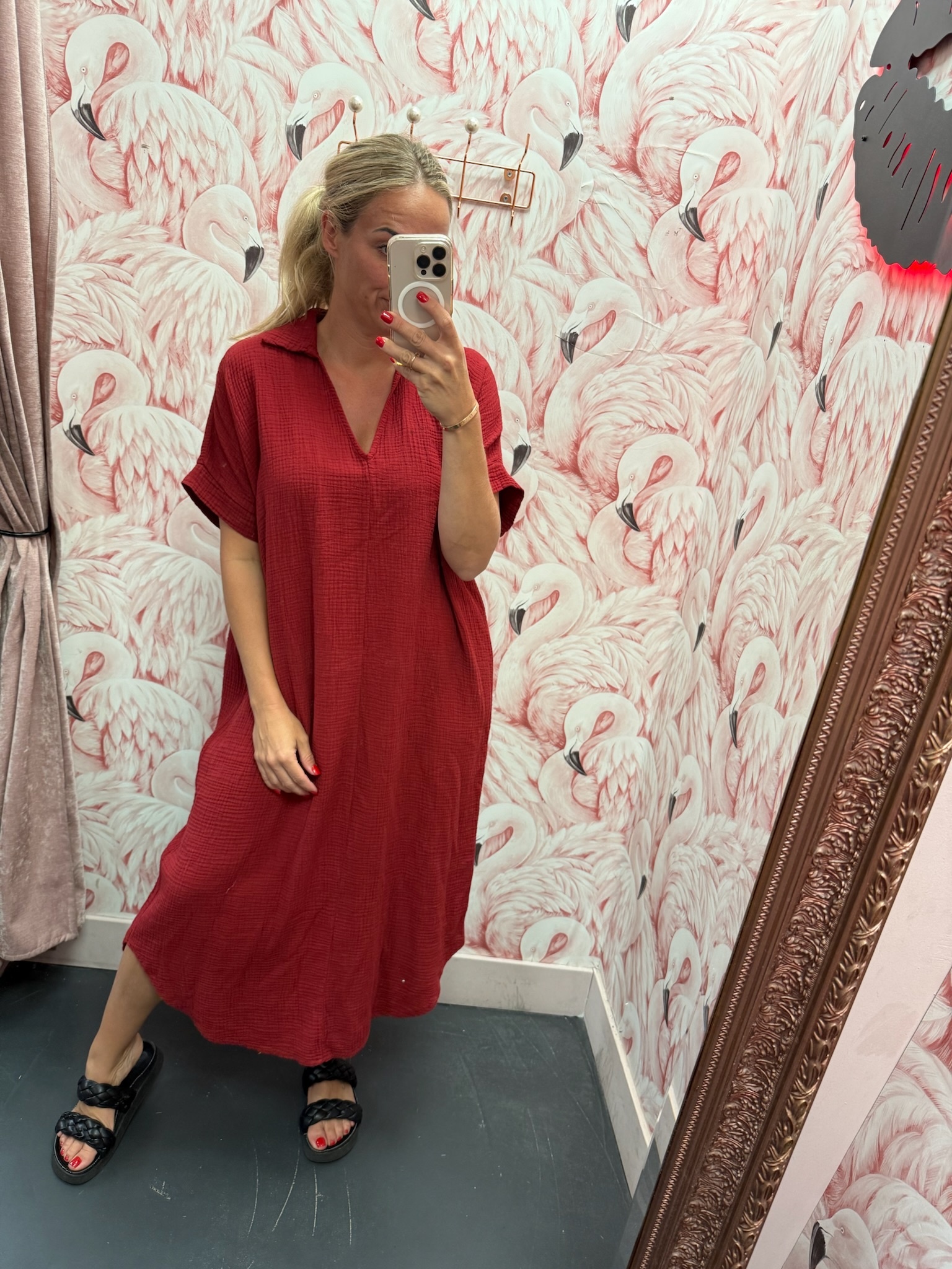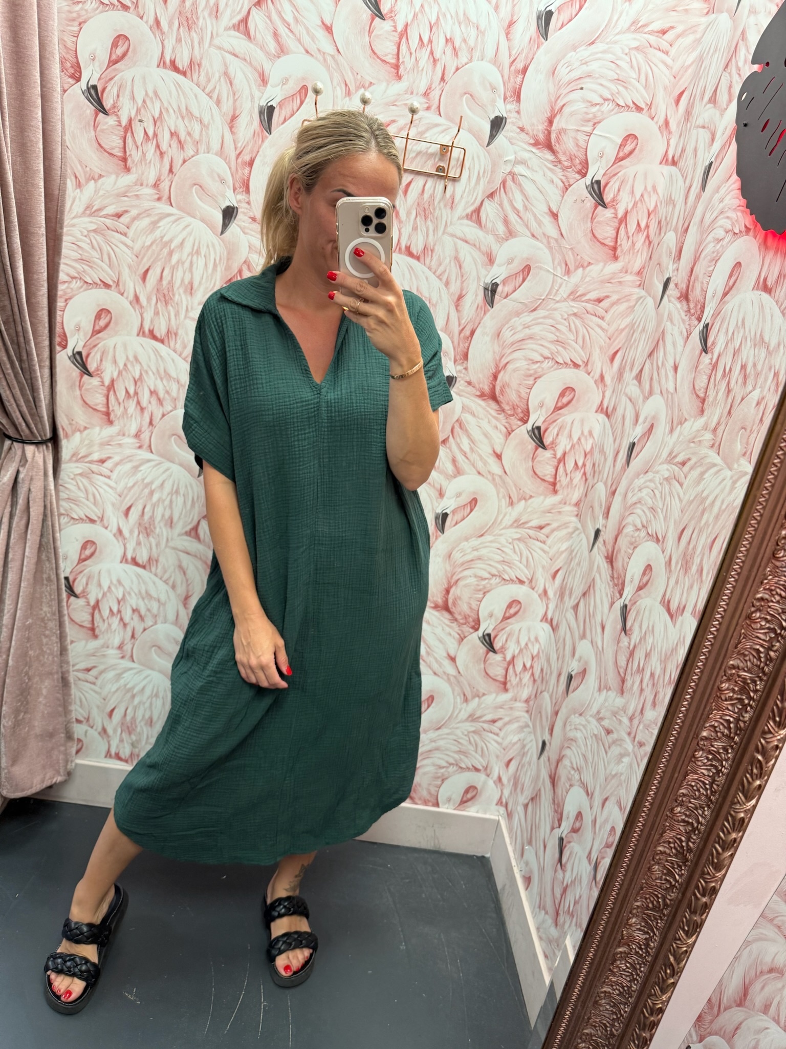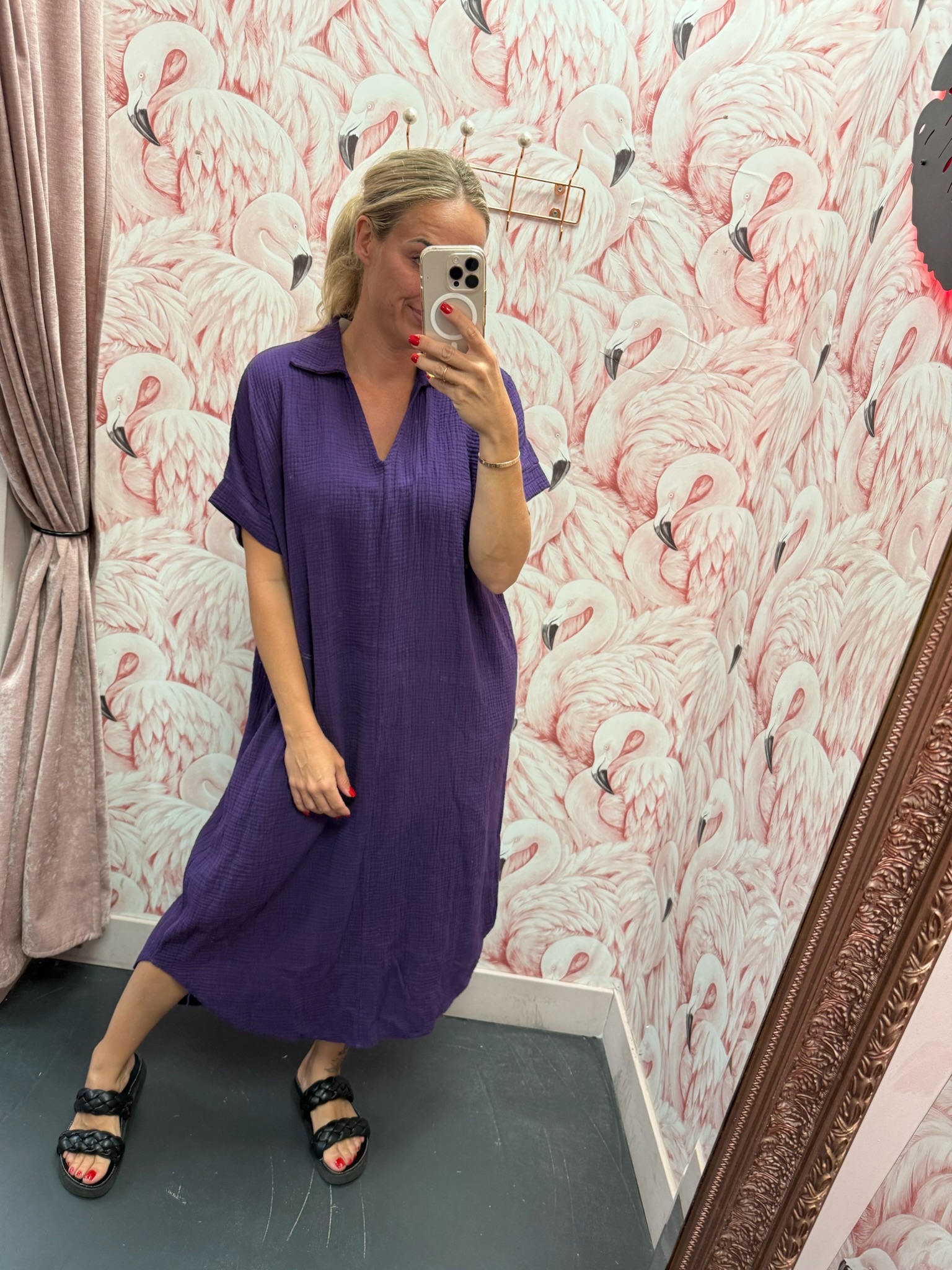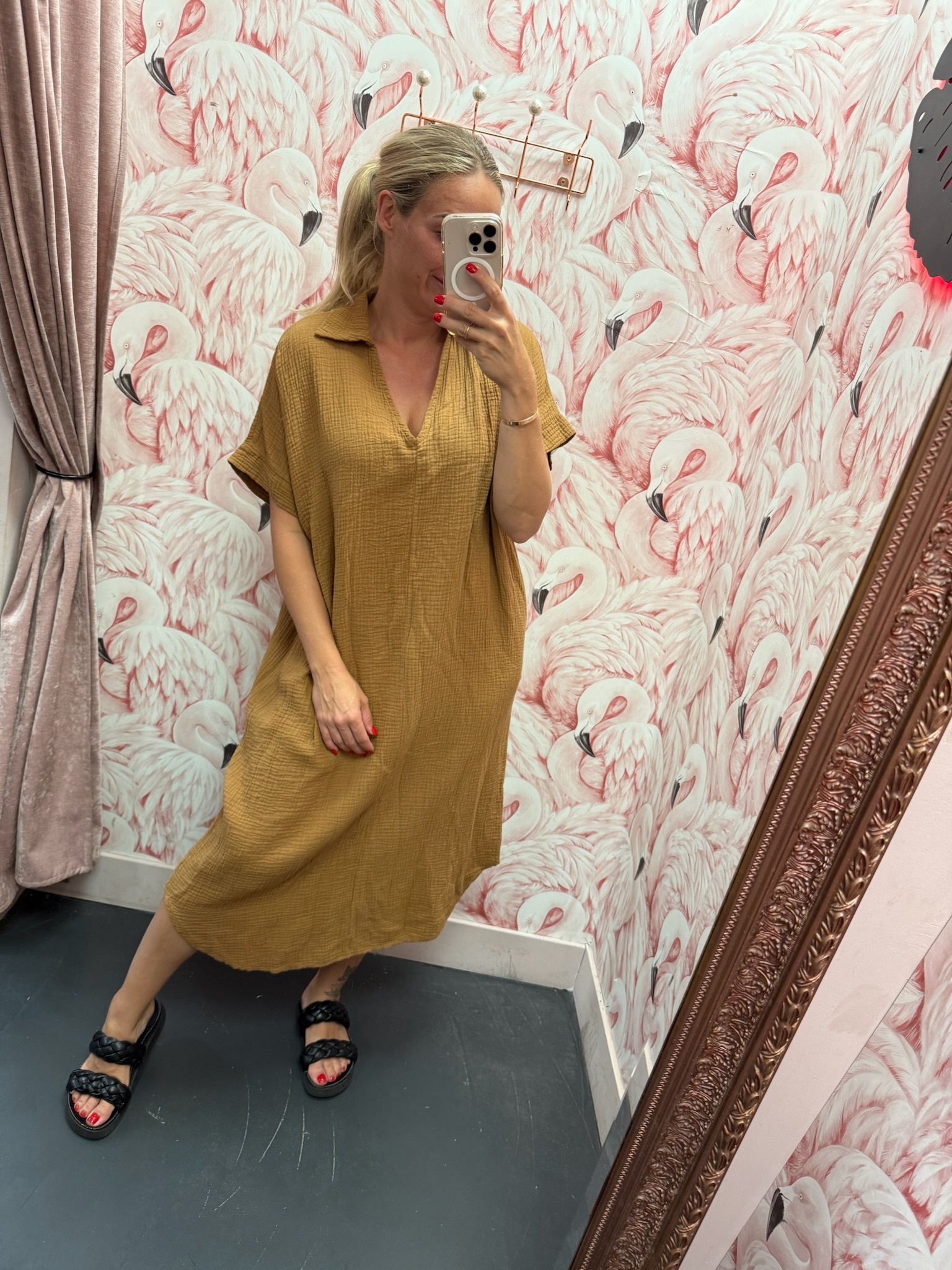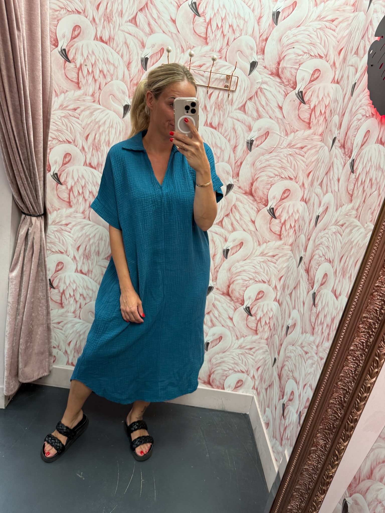 Onze ultieme bestseller is natuurlijk onze dames jurk van wafel katoen welke we in alle kleuren van de regenboog hadden is er nu in nieuwe kleurtjes! Twijfel niet te lang want ze vliegen de deur uit. De jurk valt lekker ruim tot ongeveer maat 44 en heeft een v hals met kraag.
