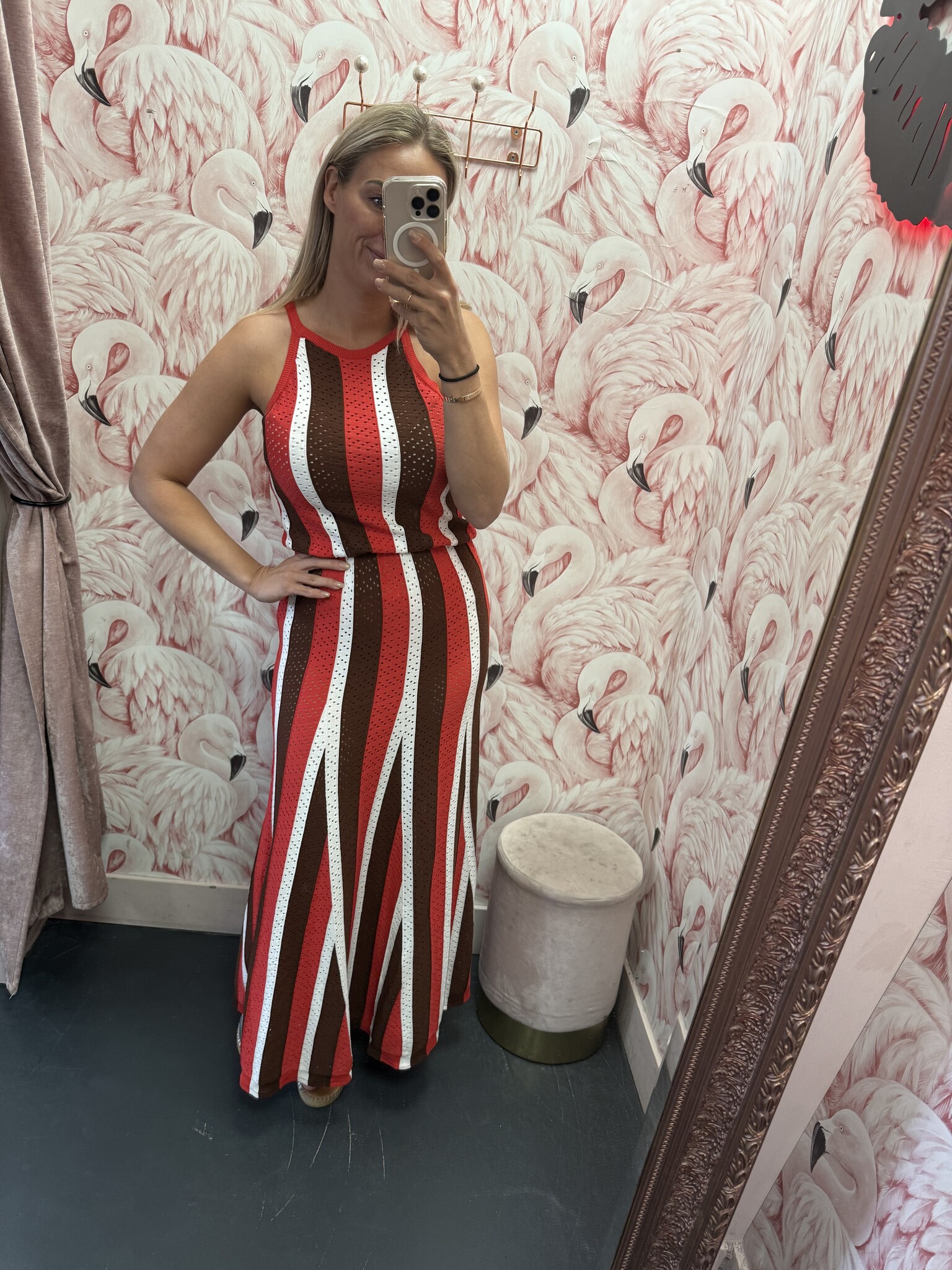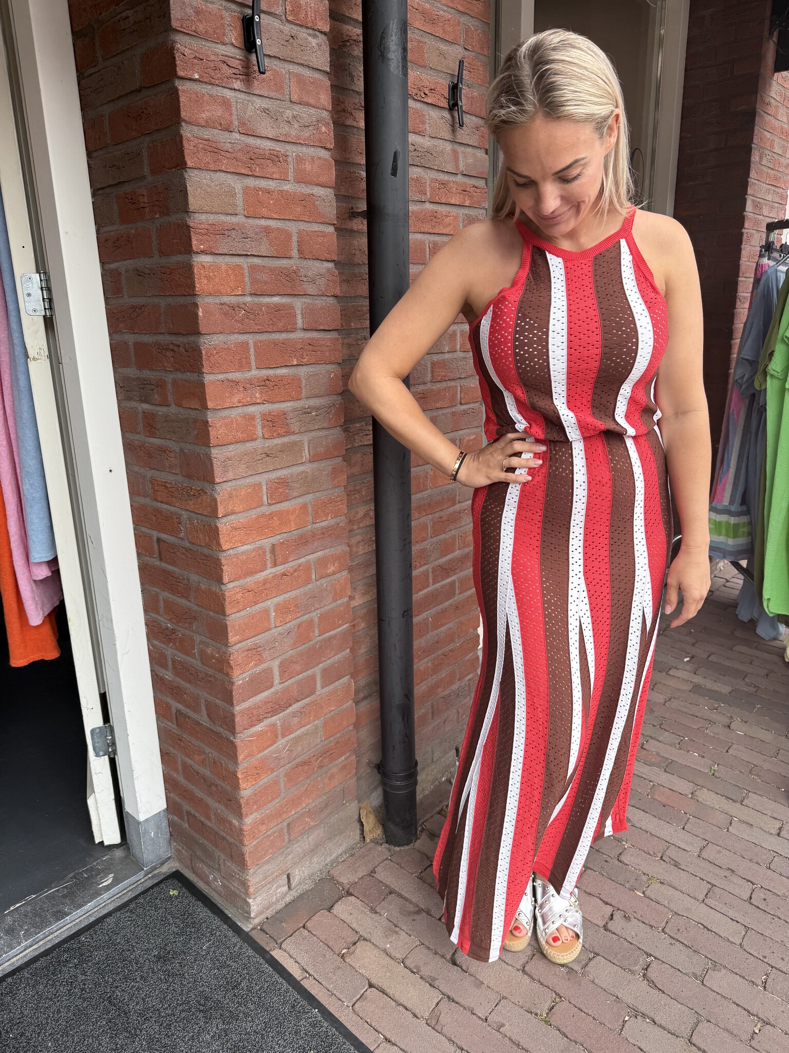 DAMES JURK ROOD GESTREEPT