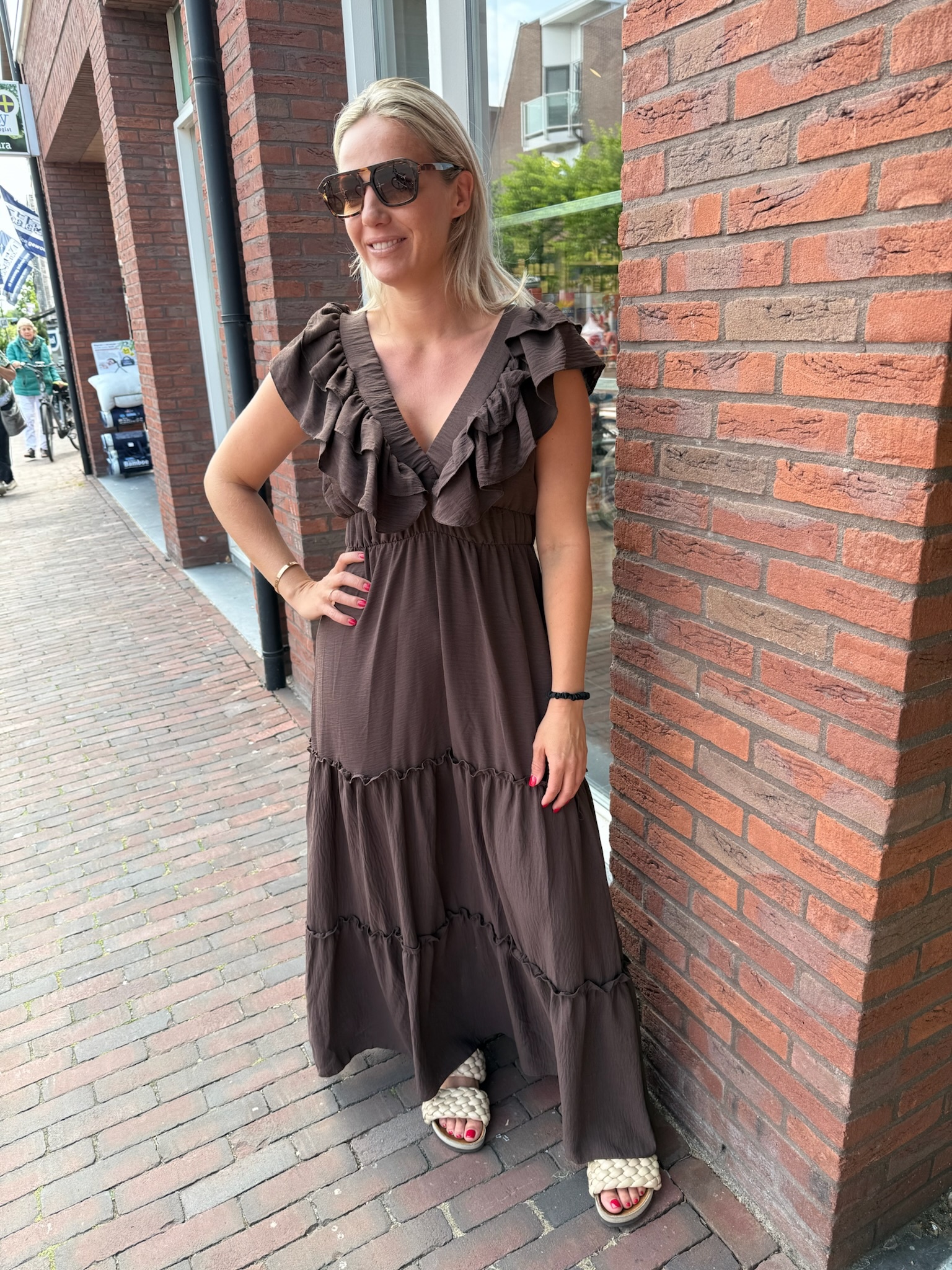 DAMES MAXI JURK BRUIN