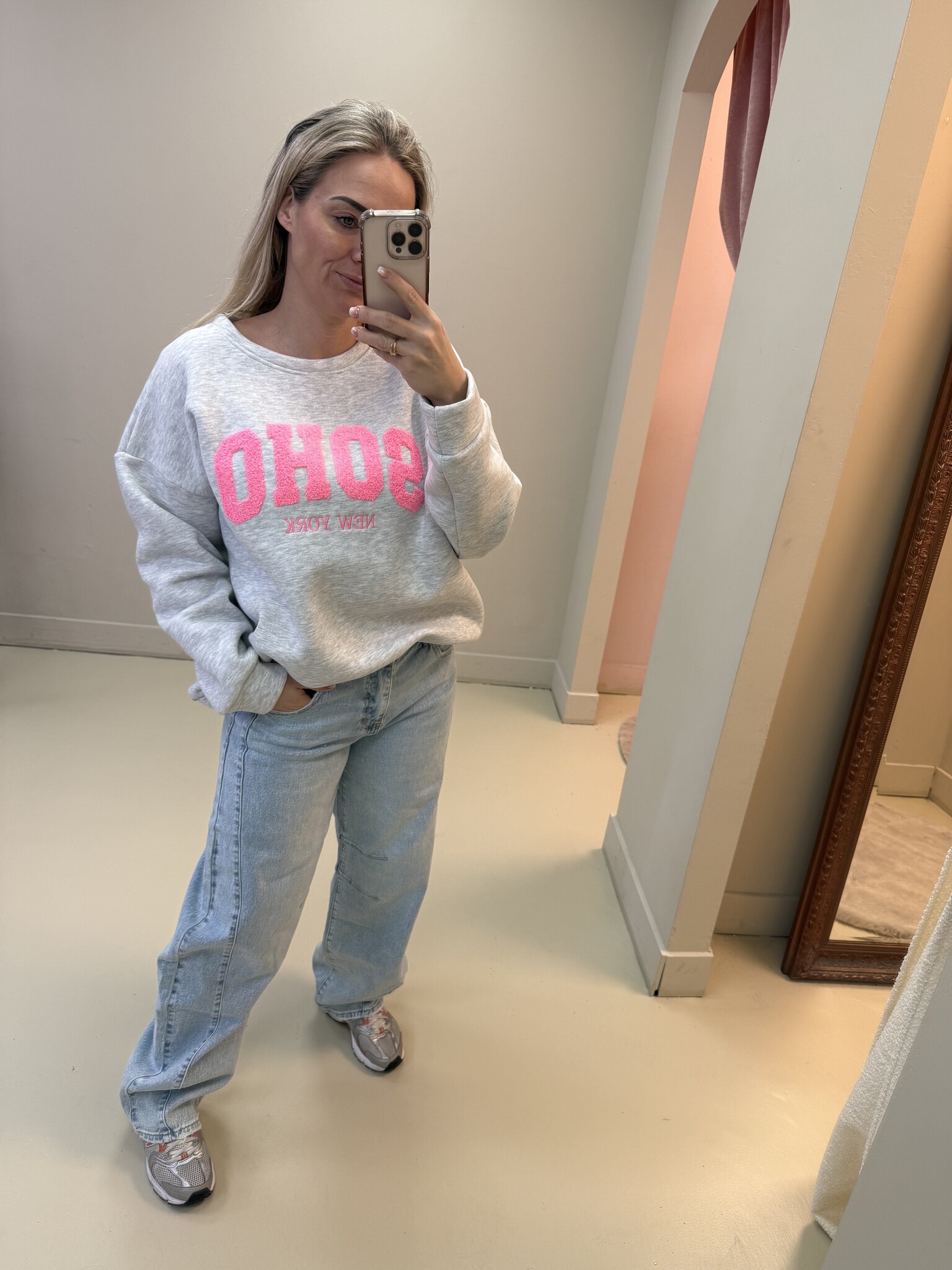 Deze heerlijke sweater met een fleece binnen kant zorgt ervoor dat de sweater lekker warm zit. De sweater met een teddy opdruk op het voorpand in de kleur roze met de tekst 'SOHO' is er in 5 verschillende kleuren. De soho sweater is one size en valt over de kont. leuk voor zowel op een jeans als een legging.