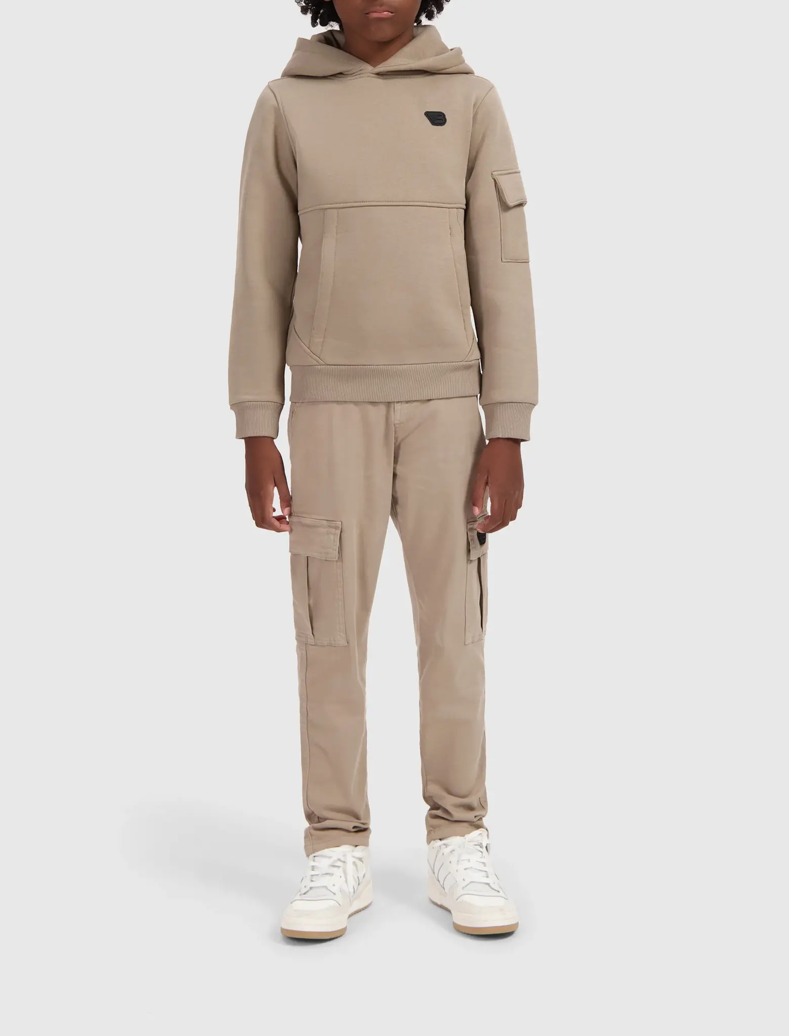 Deze te gekke stoere hoodie van het streetwear merk Ballin Amsterdam is een mooie taupe kleur, welke helemaal in de nude trend van nu past. De sweater is een hoodie dus is voorzien van een capuchon, voorzak en een klapzak op de linkermouw. Ook heeft de hoodie het iconische Ballin logo op de borst staan als embleem. De hoodie is een slim fit en is dus een aansluitend model.