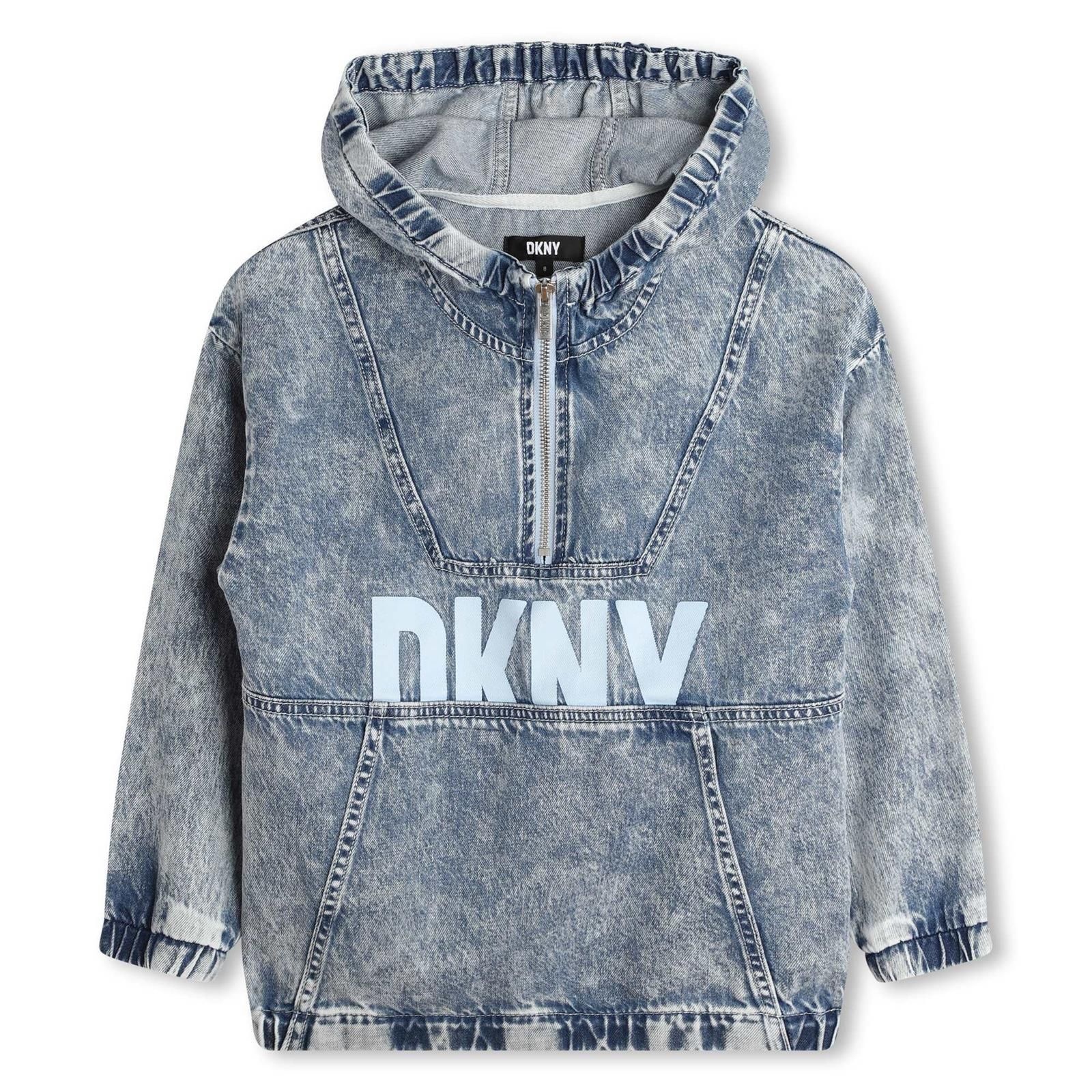 • Dit is een spijkerjasje van het merk DKNY voor de boys. De jas heeft een rits bij de hals. Hierdoor is deze gemakkelijk over het hoofd aan en uit te trekken. De jas heeft een capuchon en is onwijs leuk te matchen met de bijpassende broek.