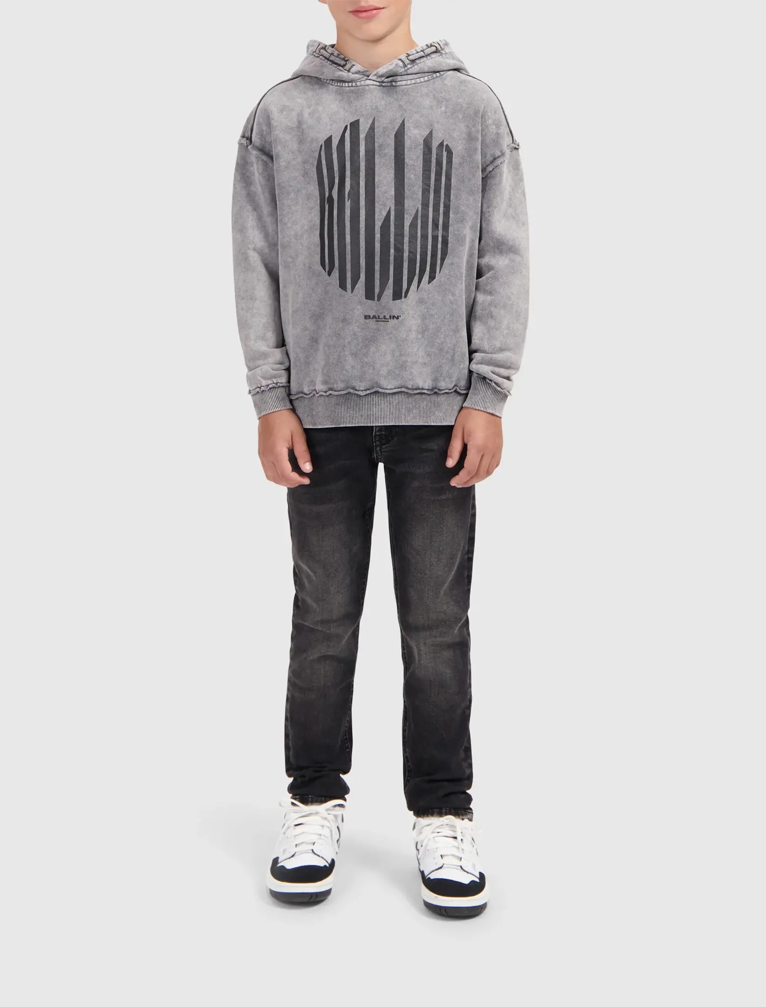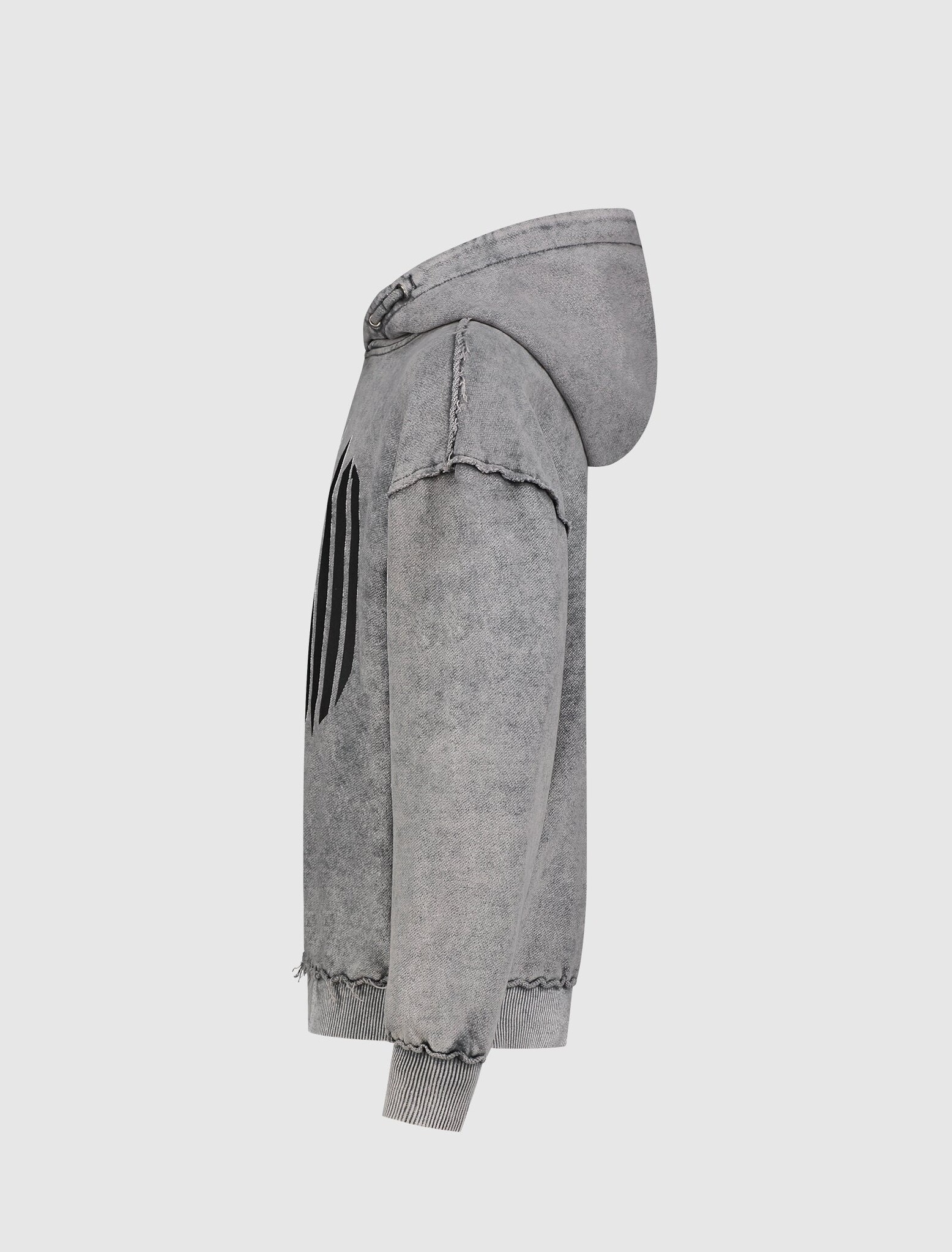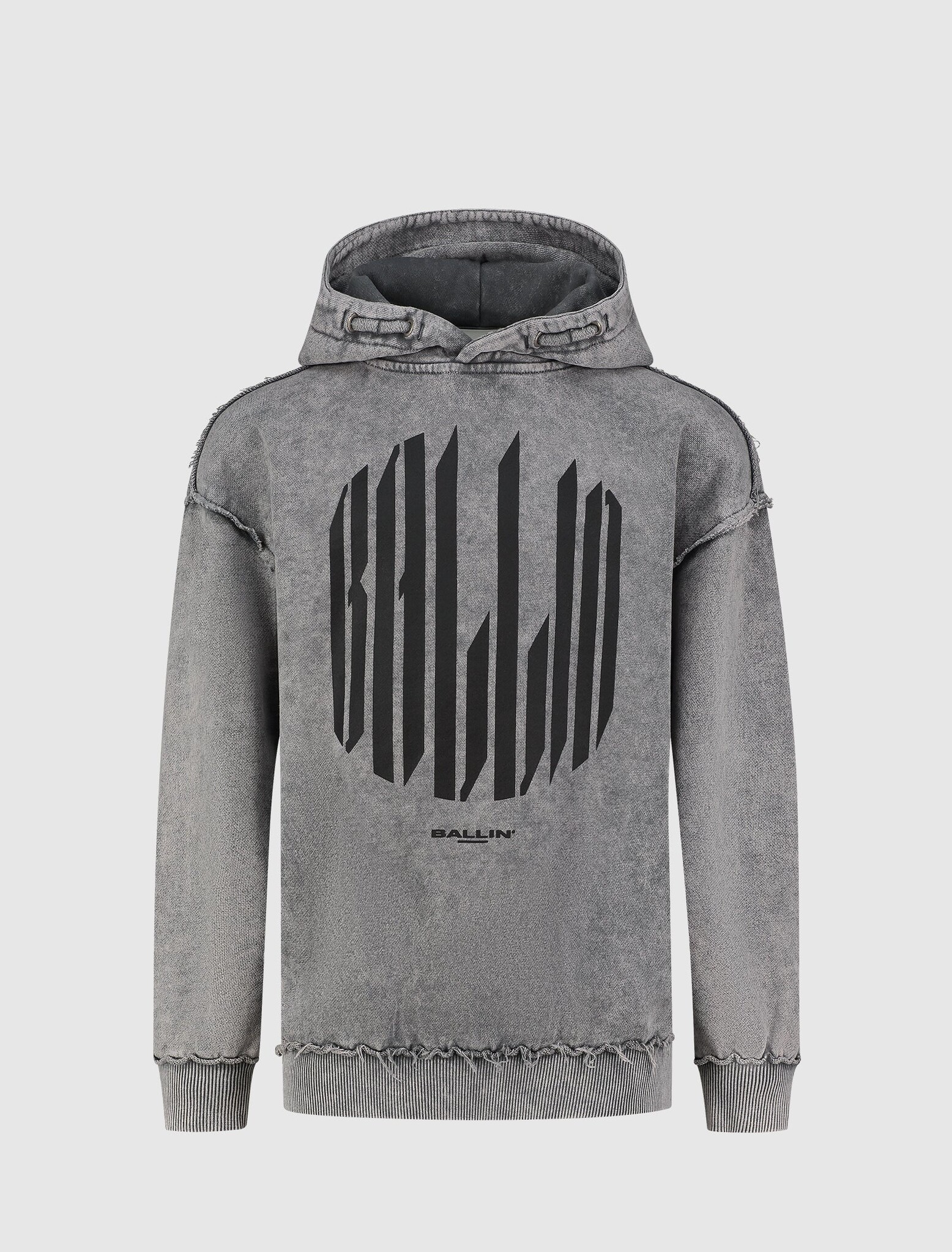 Deze te gekke grijze hoodie is gemaakt van van 100% katoen gebreide sweatstof met een acid wash voor een unieke stijl. De onafgewerkte naden geven de sweater een stoere look. De hoodie heeft een zwarte opdruk voorop met de merknaam in het zwart, het lettertype van de opdruk heeft een rockband effect. De trui met capuchon heeft een oversized fit.
