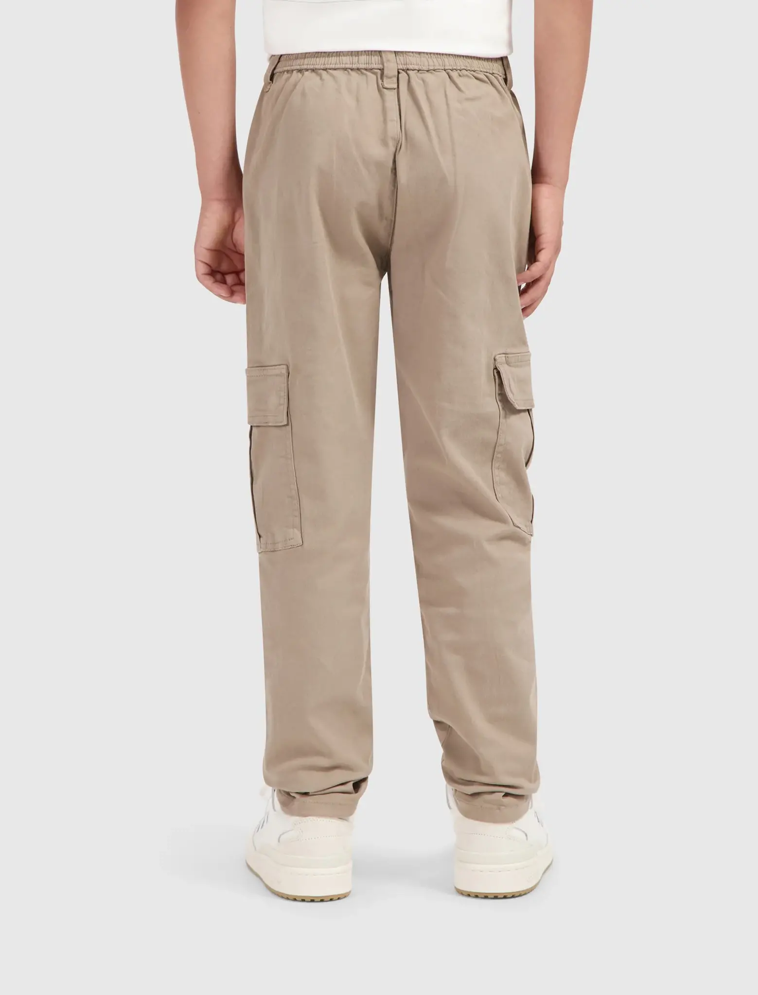 Deze te gekke broek komt uit de junior collectie van BALLIN AMSTERDAM. De broek is taupe van kleur, deze bruin tint past heel goed binnen het kleurenpalet van dit najaar. De broek is een cargo model wat zich kenmerkt door de grote grove werkbroek zakken aan de zijkant van de broek. De cargo heeft een rits en knoopsluiting en is voorzien van riem lussen. De broek zit heel lekker door de katoenen stof waar deze van gemaakt is maar de broek bevat ook een gedeelte stretch waardoor de broek ook super comfortabel zit. Combineer de cargo met een sweater of hoodie voor de ultieme stoere look.