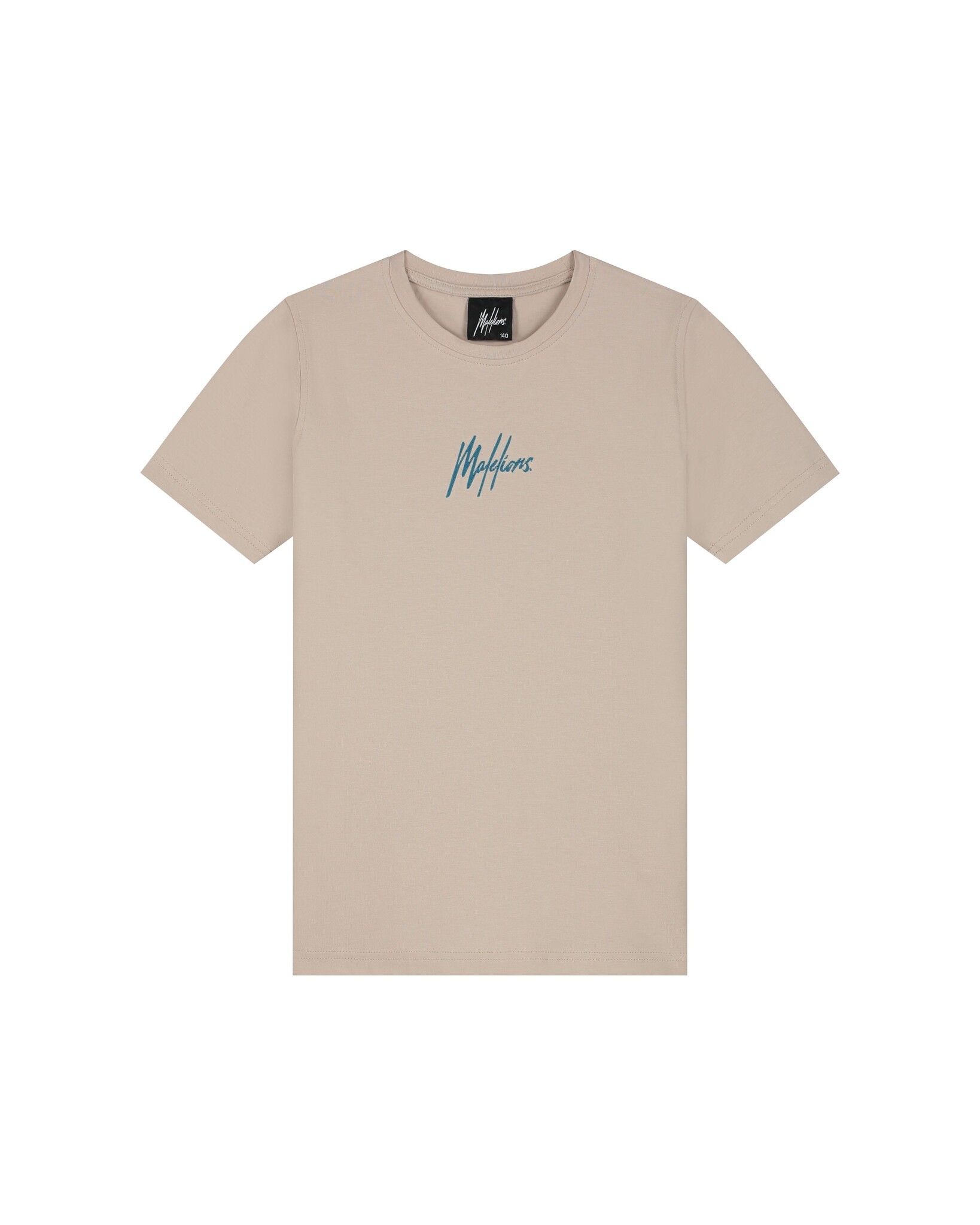 Dit heerlijke t-shirt is taupe van kleur (beige) en heeft op de achterzijde een merk opdruk in het petrol blauw, de opdruk ligt op het t-shirt is een rubber achtig materiaal, in dit zelfde materiaal staat op de voorzijde borst een kleine print. Het t-shirt heeft korte mouwen en een ronde hals. Combineer het t-shirt met de bijpassende short welke ook bij ons verkrijgbaar is maar het shirtje is natuurlijk ook heel makkelijk te combineren met een jeans.