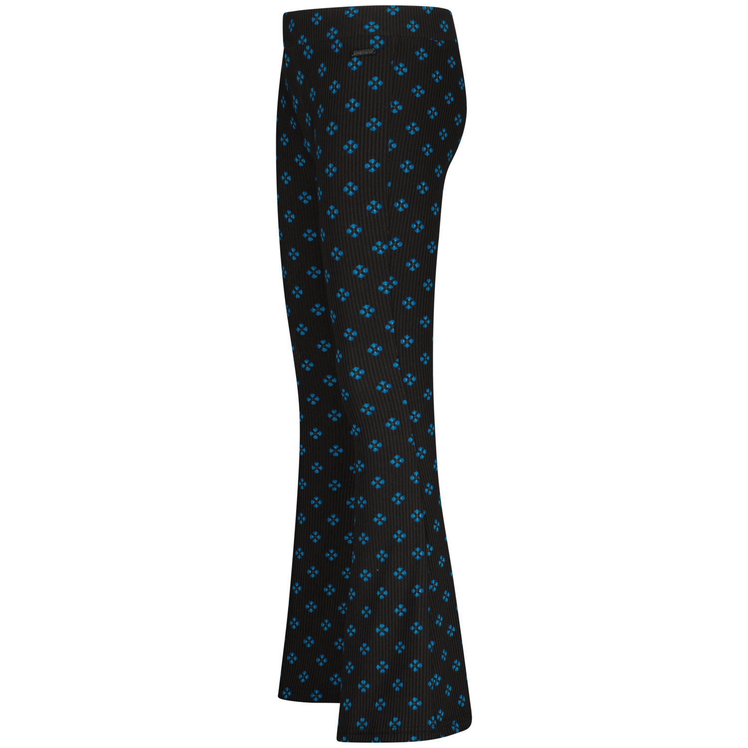 Deze flair van het super mooie en betaalbare merk RAIZZED is zwart van kleur en gemaakt van een mooie elastische stretch ribstof, de broek heeft een all over print met kleine blauw bloemen. De broek is dus een flared model wat wil zeggen dat de broek uitlopende pijpen heeft vanaf de knie. De broek heeft een elastische taille band en is een slip on model wat beteken dat de broek geen sluitingen heeft. De broek is goed te combineren met een leuke sweater maar maakt de perfecte set met de bijpassende turtleneck van RAIZZED welke ook bij ons verkrijgbaar is.
