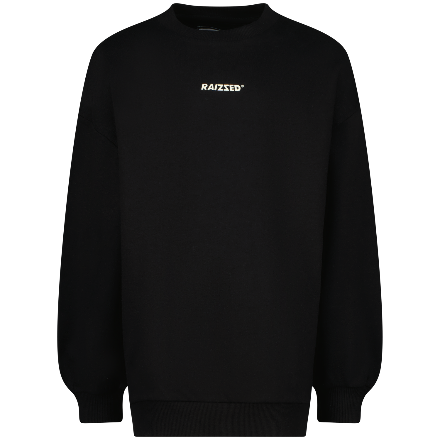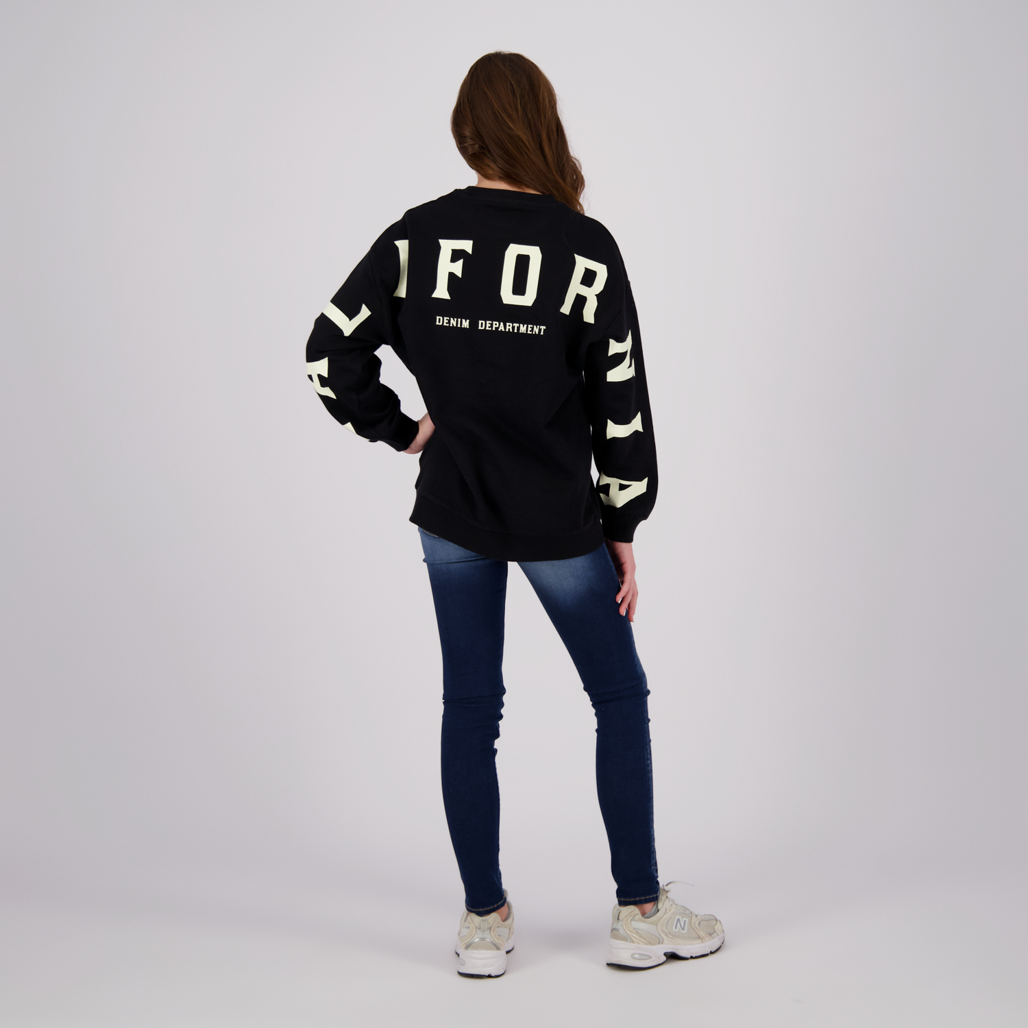 Deze heerlijke sweater is op het eerste oog een super fijne basic zwarte sweater met in het beige op de voorzijde het merknaam logo, maar niks is minder waar! Als je de rug van de trui ziet weet je meteen waarom, deze is namelijk voorzien van een te gekke back print welke van mouw tot mouw loopt, de back print bestaat uit de tekst CALIFORNIA en DENIM DEPARTMENT verwijzend naar de oorsprong van het merk raizzed, dit is namelijk van origine een jeansmerk. De trui heeft een ronde rib hals en valt iets langer waardoor deze ideaal is voor de koudere dagen en om op een legging te dragen. De trui heeft elastische ribstof boorden aan de mouwen en onderzijde.