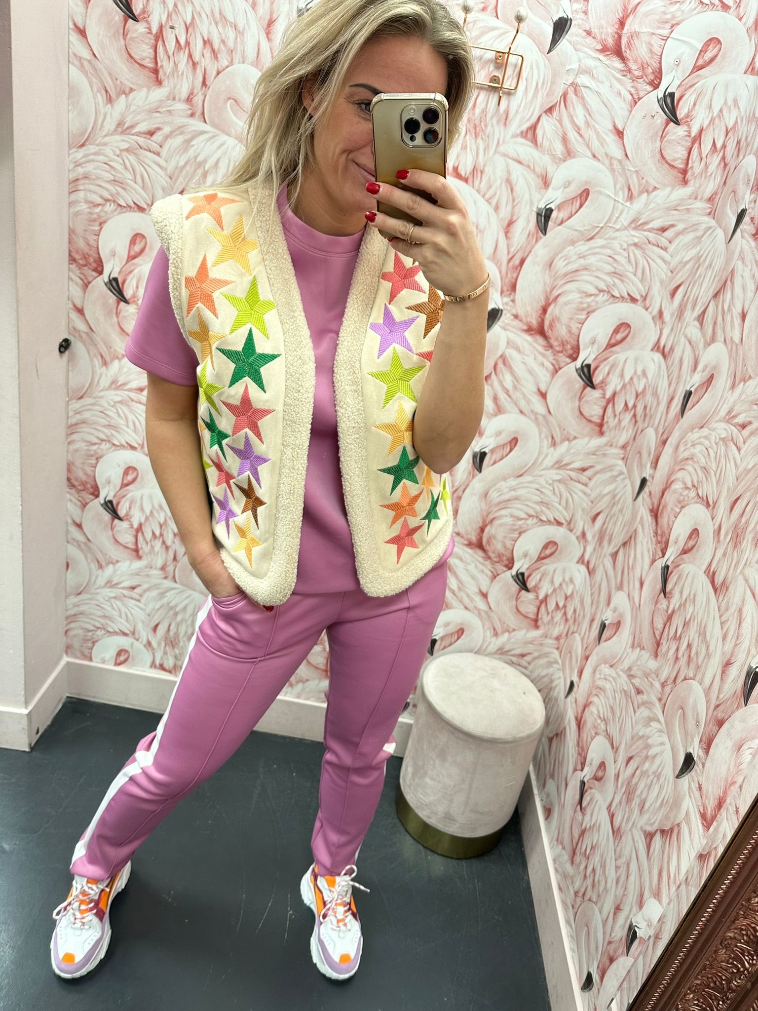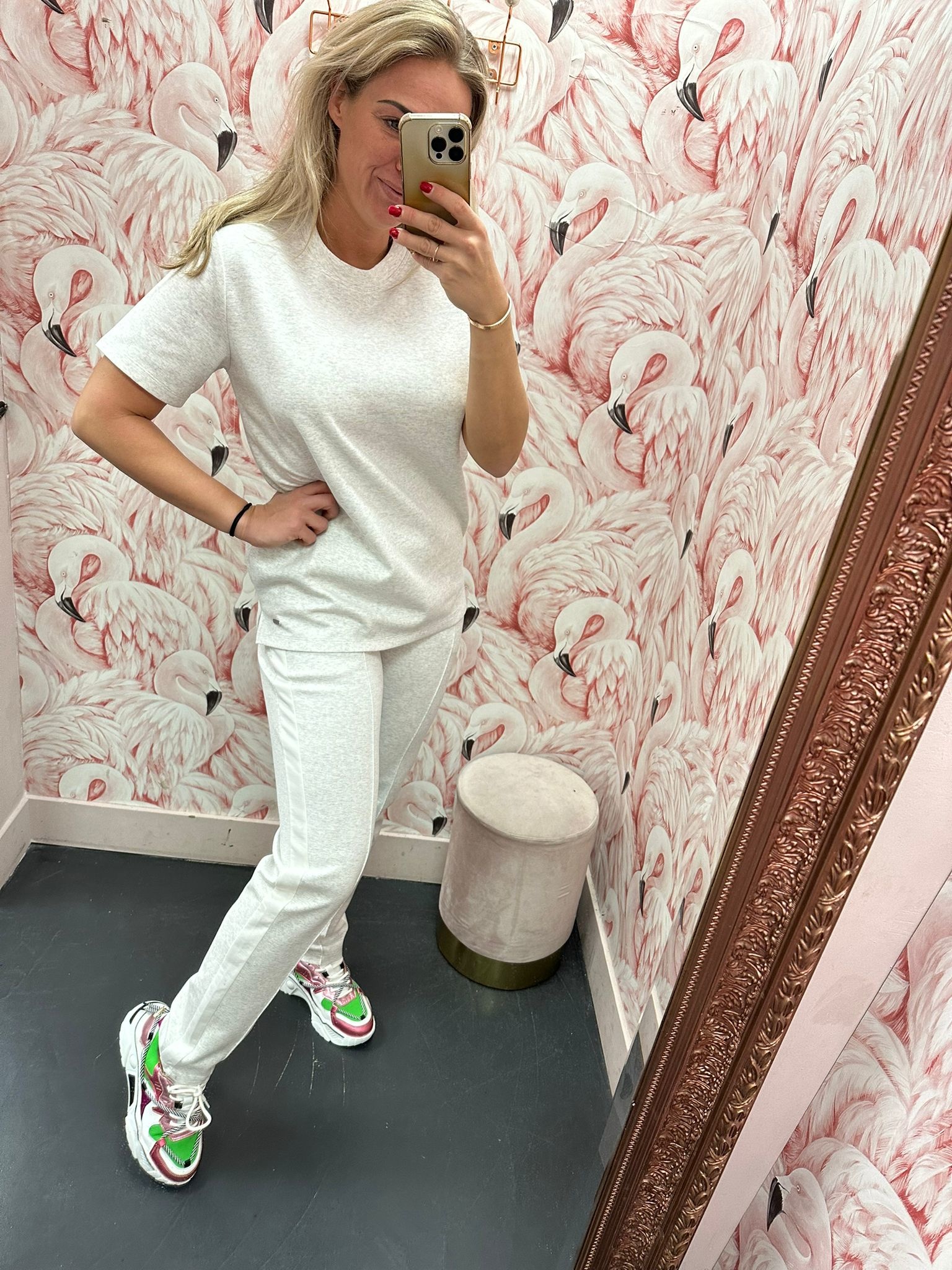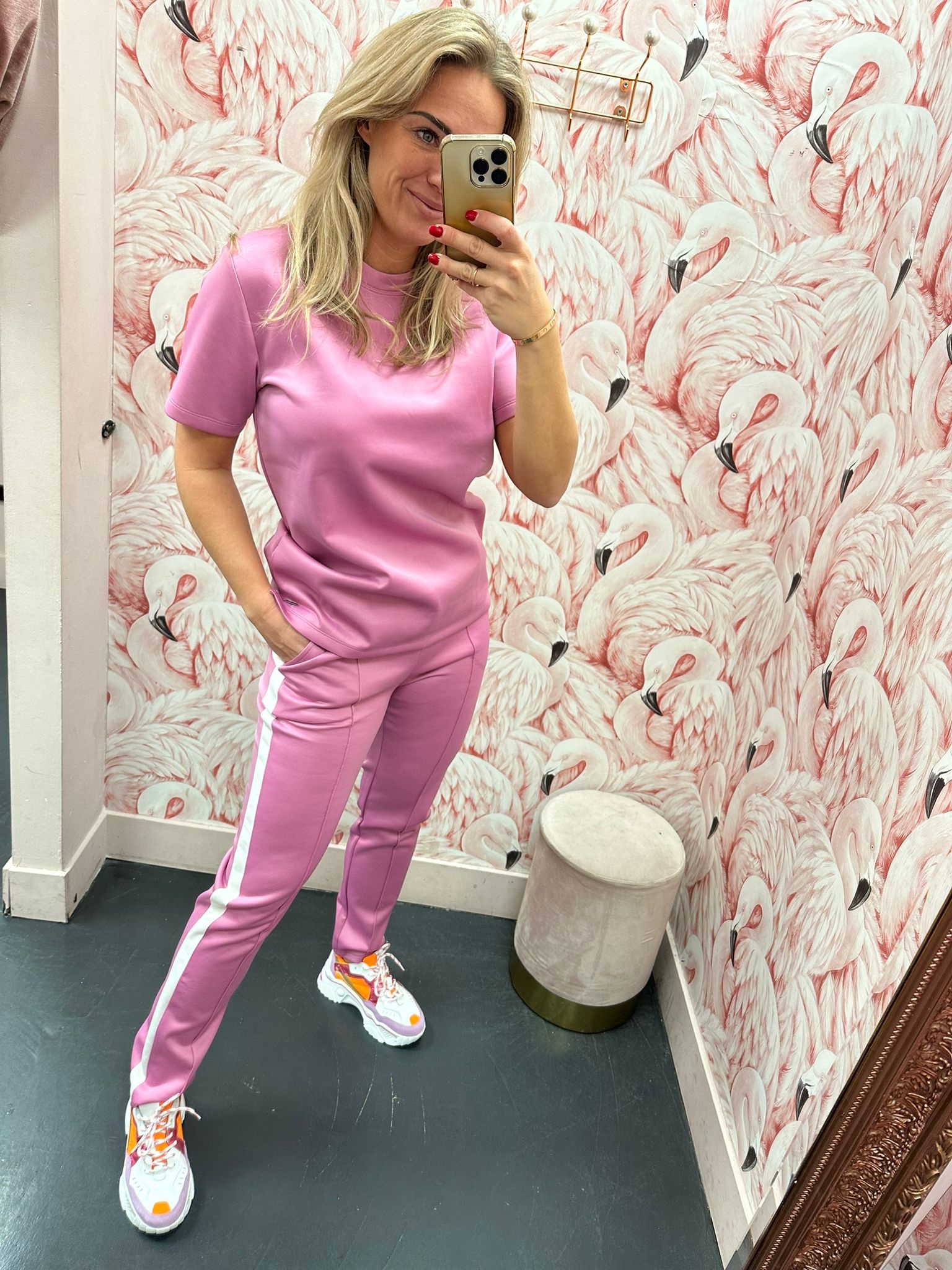 Heerlijke zachte stretch top van het merk AMBIKA, de top is van tracksuit stof en heeft een mooie ronde hals. Ideaal te combineren met de bijpassende broek.